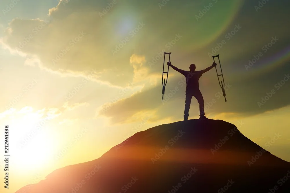 Regain Balance: Land on your strong foot and move crutches forward for the next hop.